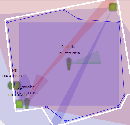 It’s also worth a mention that your playable area does not need to be rectangular, it can be any shape you like – provided a rectangle can fit in it. For example, look at our room here (as the Vive sees it):